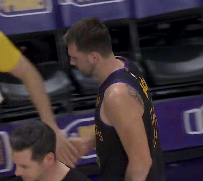 湖人隊最后6.7秒,東契奇得到了一個空位三分的投籃機會,但是東契奇猶豫未出手,隨后傳給了詹姆斯,后者頂著防守人高難度出手未能命中。