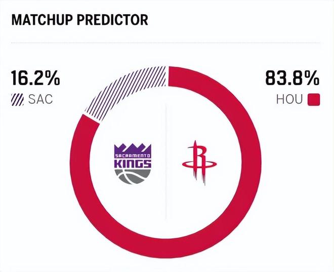 賽前,美媒ESPN對本場比賽進行了勝率預測,火箭隊勝率依舊高達83.8%,國王勝率則僅有16.2% ,差距明顯。