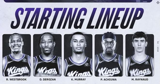 首發(fā)陣容方面,國王隊這邊,薩博尼斯(左膝半月板撕裂修復手術)、拉文(右手手術)以及新援亨特(左眼手術)均已賽季報銷,主帥排出的最新首發(fā)五人組為:基根-穆雷、威斯布魯克、德羅贊、阿丘瓦、雷諾;火箭隊這邊,范弗利特和亞當斯賽季報銷,阿門·湯普森(左四頭肌疼痛)、泰特(右膝疼痛)也不打,首發(fā)陣容為:謝潑德、凱文-杜蘭特、塔里-伊森、小賈巴里-史密斯和阿爾佩倫-申京。