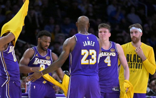 首先是洛杉磯湖人,本賽季高舉進攻大旗的紫金軍團,在球隊出現傷病潮期間,頑強地打出了讓人矚目的戰績,正當大家無比期待當三叉戟同時保持健康時,湖人會展現怎樣的天賦時,一切卻事與愿違。本賽季,當東契奇、詹姆斯、里夫斯同時出戰時,湖人的防守效率僅為115.1,凈效率是尷尬的-8.4,戰績僅為8勝6負。現實版的“三個和尚沒水喝”在天使之城上演,隨著艾頓無比沮喪的消息不脛而走,湖人的更衣室似乎也處在風雨飄搖之中,如今他們距離附加賽圈只剩一步之遙。
