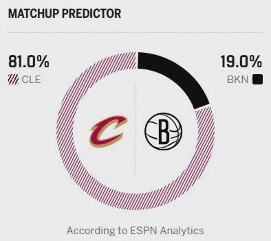 今日一戰(zhàn),騎士的新核哈登迎來復出,米切爾將繼續(xù)缺陣。即便少了一位核心,騎士還有阿倫與莫布里的雙塔坐鎮(zhèn),實力依舊占據(jù)明顯上風。不出意外,騎士有望在客場輕松拿下比賽,終結(jié)連敗頹勢。賽前,ESPN給出本場勝率預測,騎士高達81%,籃網(wǎng)只有19%。