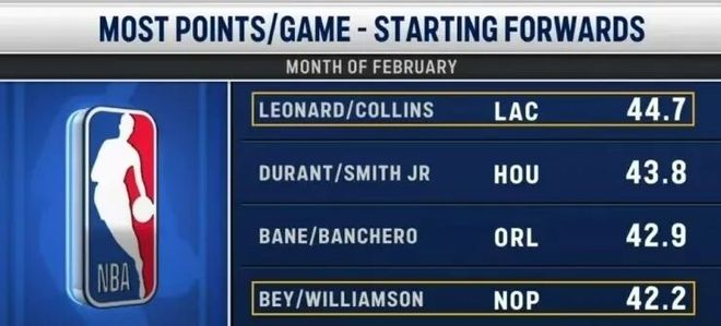 快船擁有整個(gè)二月得分最強(qiáng)的鋒線組