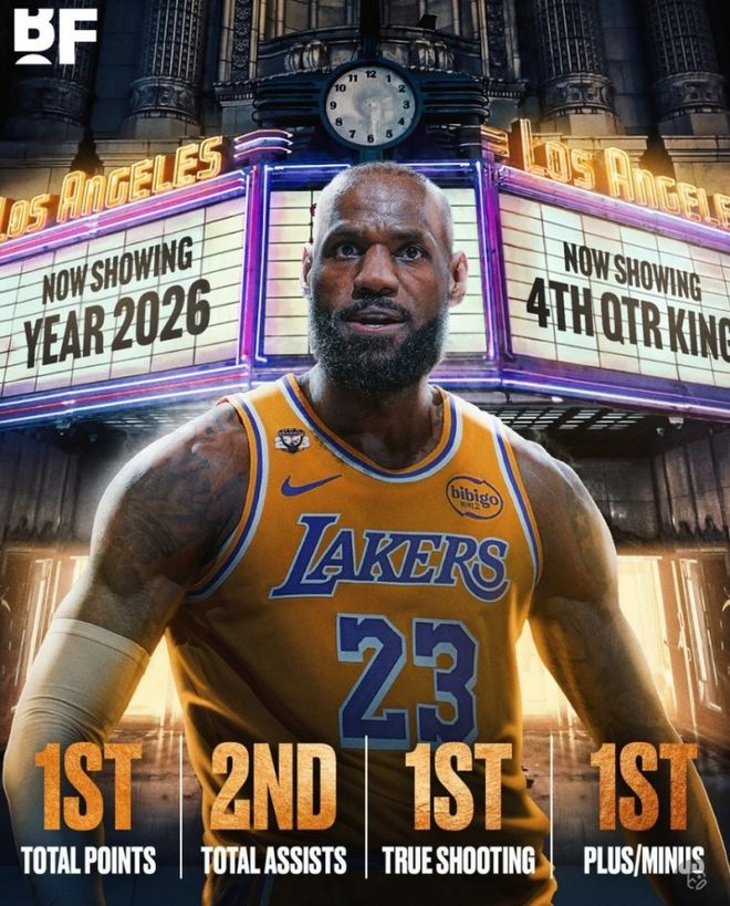 13. 詹姆斯今年至今末節總得分、正負值、真實命中率都是聯盟第一!