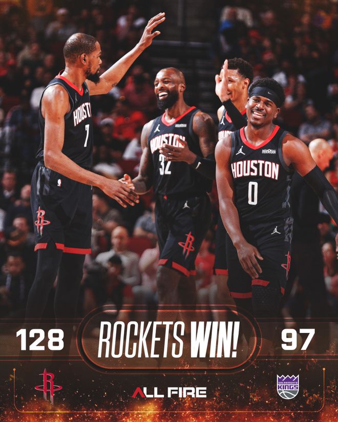 22. 火箭128-97大勝國王,申京26+13+11,杜蘭特21分,威少22分